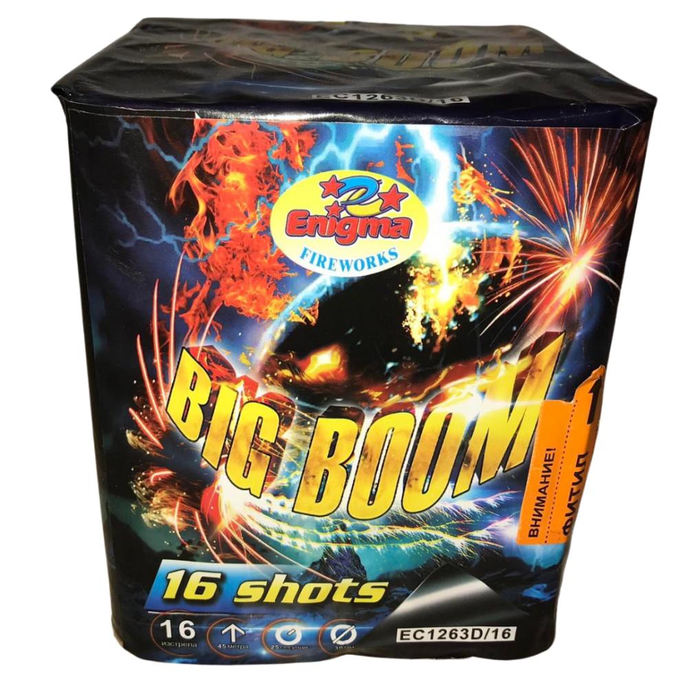 Kompaktní ohňostroj Big Boom je doprovázený mnoha různobarevnými efekty. Do vzduchu vypálí 16 ran ráže 30 mm, celá show trvá 25 vteřin.