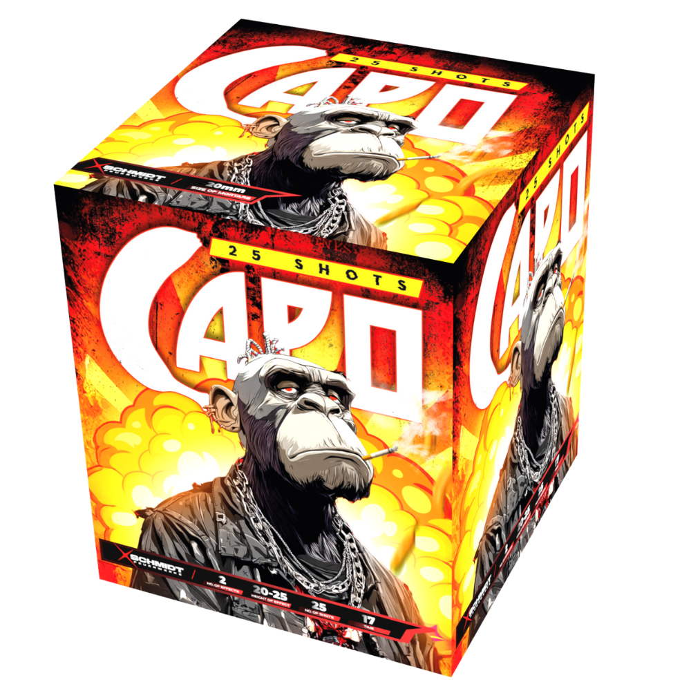 Kompaktní ohňostroj Capo je doprovázený různými efekty. Tento ohňostroj do vzduchu vypálí 25 ran ráže 20 mm, celá show trvá 25 vteřin.
