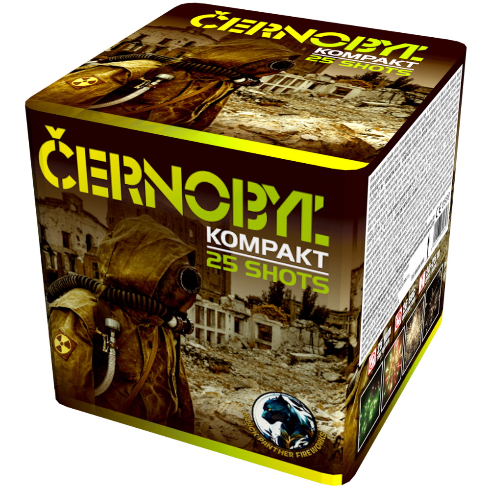 Kompaktní ohňostroj Černobyl je doprovázený různobarevnými efekty. Do vzduchu vypálí 25 ran ráže 25mm, celá tato barevná show trvá 35 vteřin.