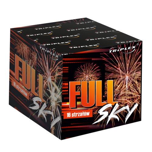 Kompaktní ohňostroj Full sky je doprovázený mnoha různobarevnými efekty. Do vzduchu vypálí 16 ran ráže 20 mm, celá show trvá 30 vteřin.