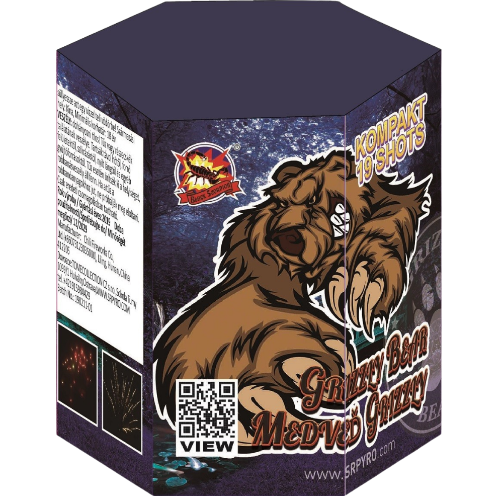 Kompaktní ohňostroj Grizzly bear je doprovázený mnoha různobarevnými efekty. Do vzduchu vypálí 19 ran ráže 20 mm, celá show trvá 25 vteřin.