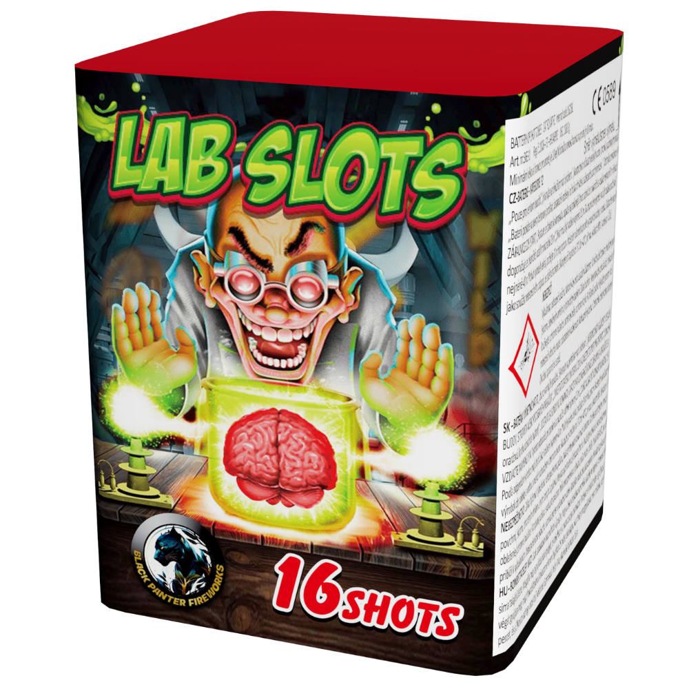 Kompaktní ohňostroj Lab Slots je doprovázený mnoha různobarevnými efekty. Do vzduchu vypálí 16 ran ráže 20 mm, celá show trvá 25 vteřin.