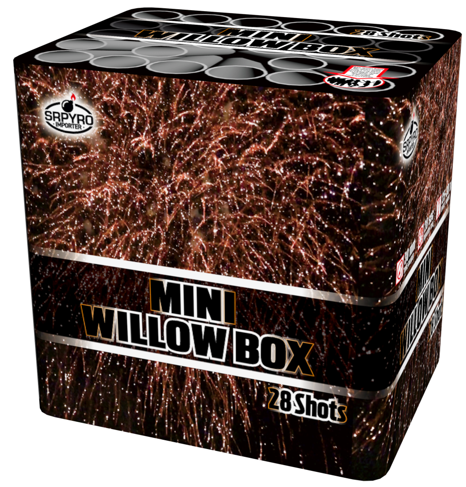 Kompaktní ohňostroj Mini Willow Box je doprovázený různými efekty. Tento ohňostroj do vzduchu vypálí 28 ran ráže 30 mm.