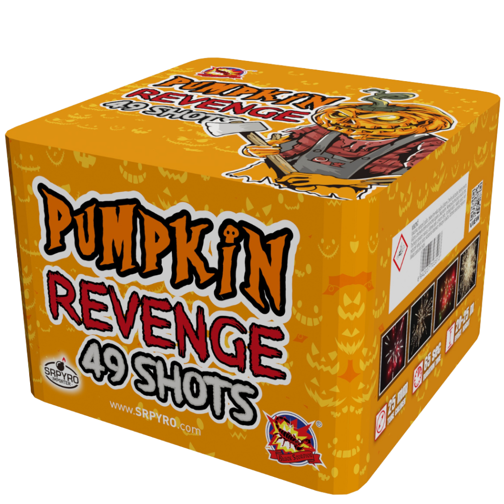 Kompaktní ohňostroj Pumpkin Revenge je doprovázený mnoha různobarevnými efekty. Do vzduchu vypálí 49 ran ráže 25 mm, celá show trvá 65 vteřin.