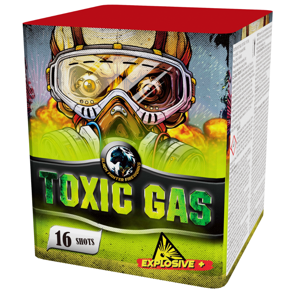 Kompaktní ohňostroj Toxic Gas je doprovázený mnoha různobarevnými efekty. Do vzduchu vypálí 16 ran ráže 30 mm, celá show trvá 40 vteřin.
