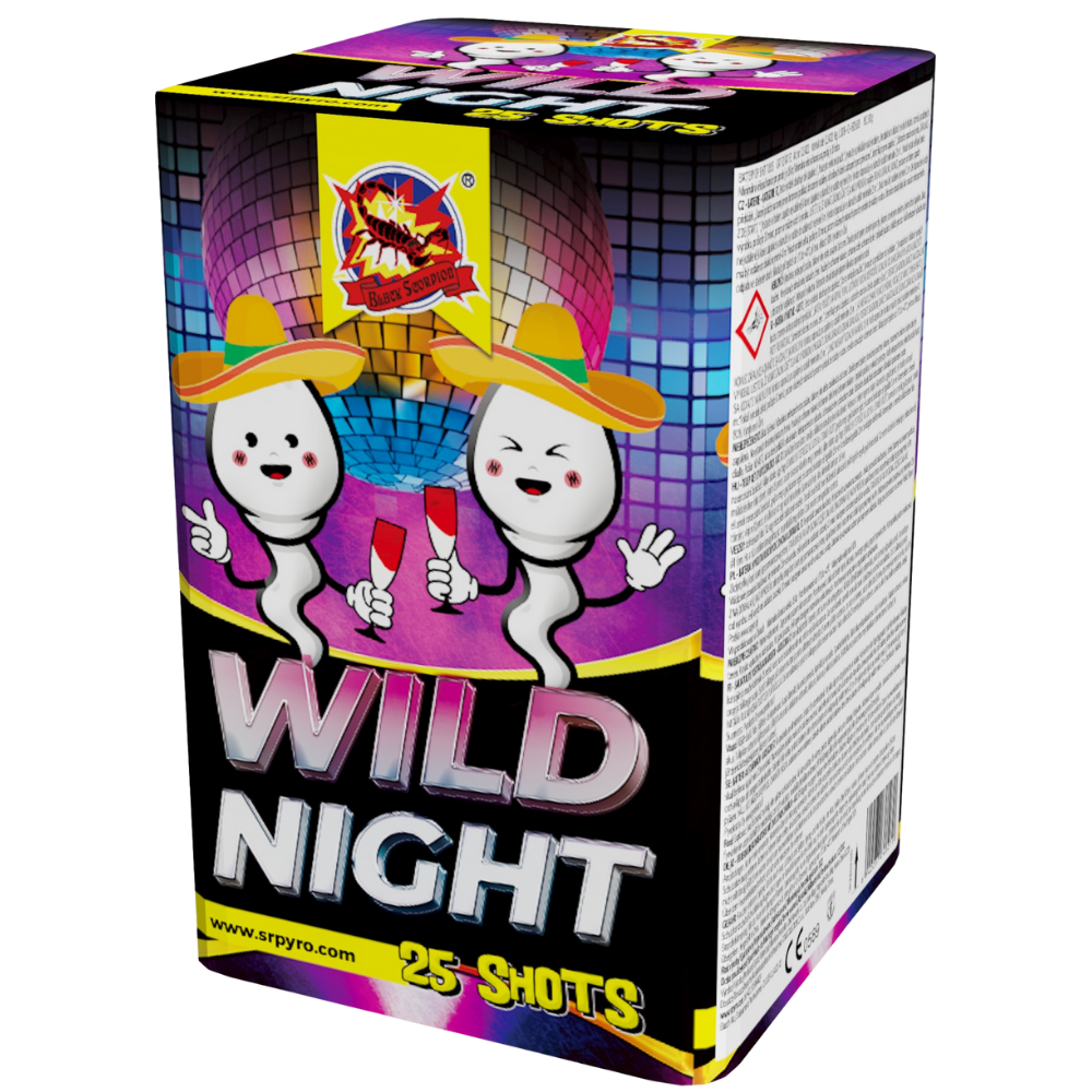 Kompaktní ohňostroj Wild Night je doprovázený efektem zlatistých spirál se zapísknutím výbuchem. Do vzduchu vypálí 25 ran ráže 25 mm, celá show trvá 35 vteřin.